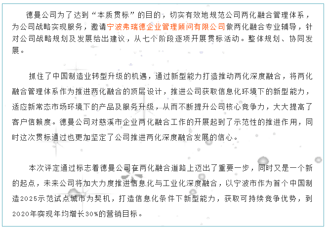 慈溪首家“国家级”两化融合管理体系贯标试点企业通过工信部评定!