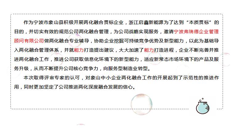 浙江启鑫新能源顺利通过《两化融合管理体系》国家专家组初审