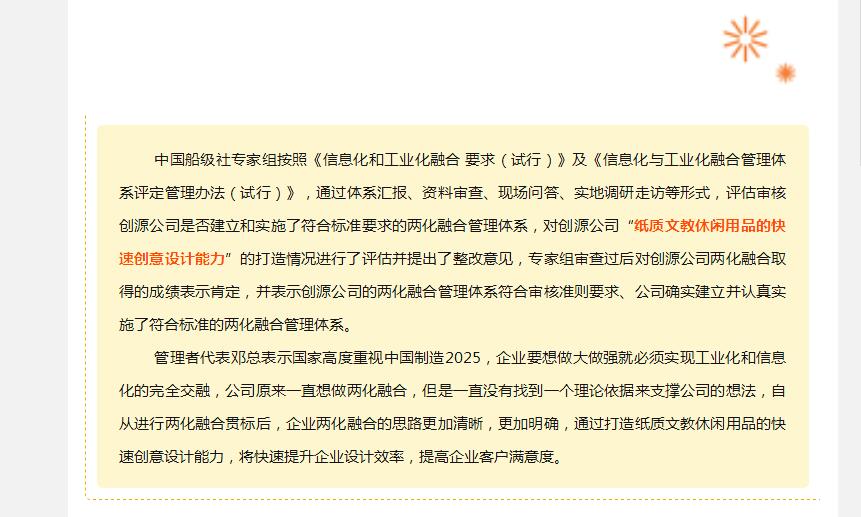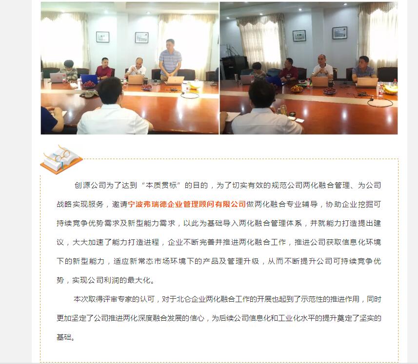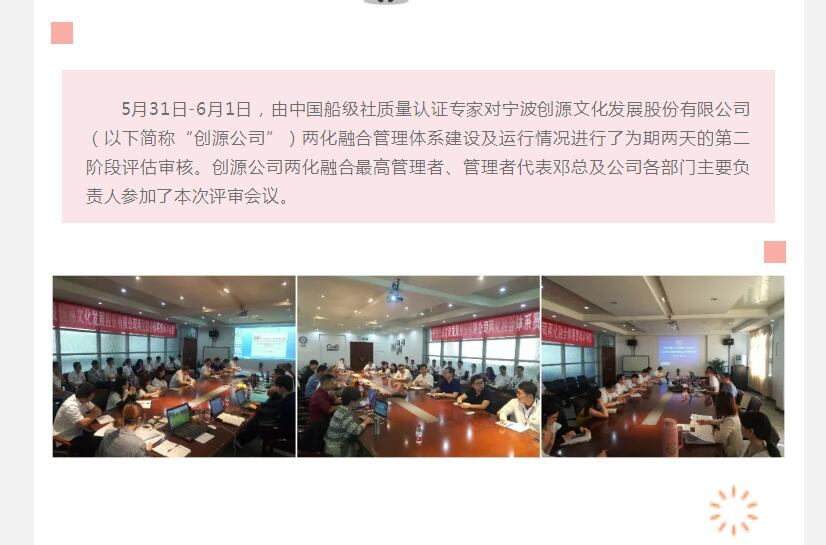 恭贺宁波创源文化发展股份有限公司《两化融合管理体系》顺利通过专家组二审