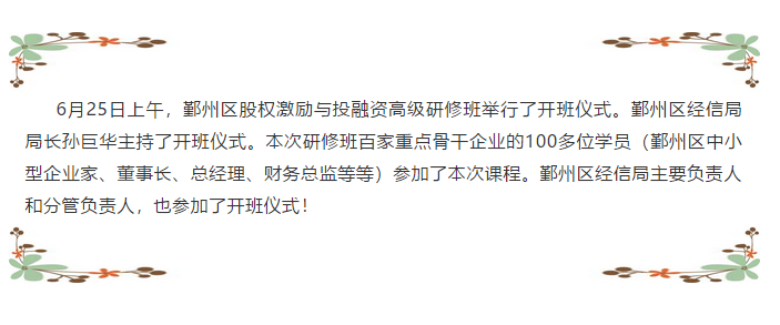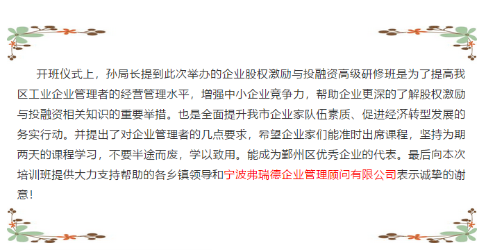 2018鄞州区《企业股权激励与投融资高级研修班》精彩分享!