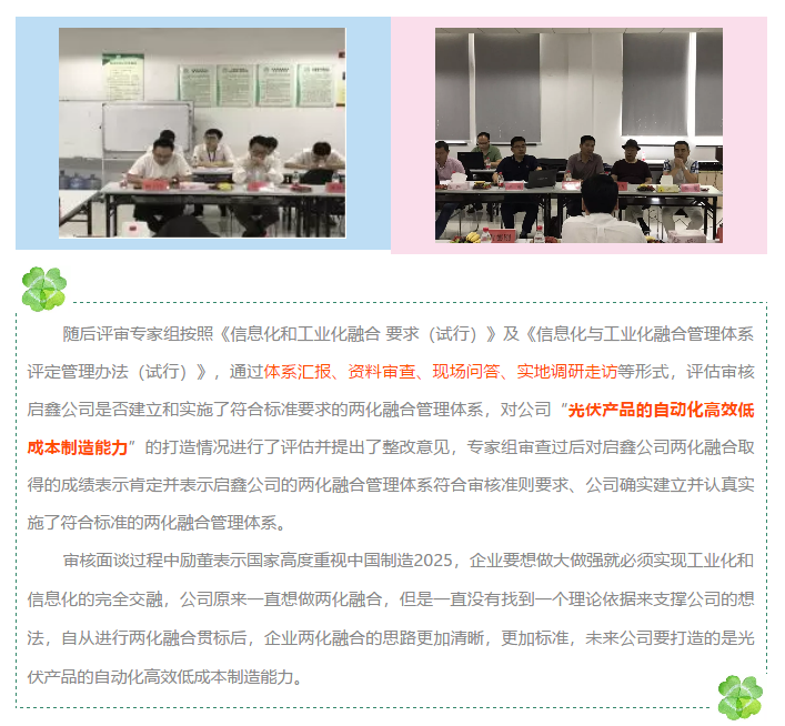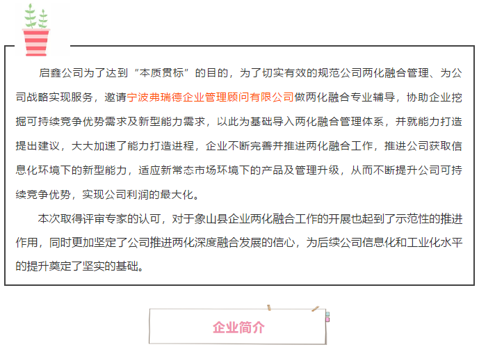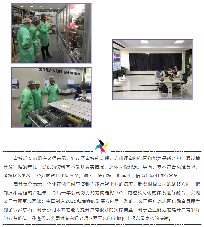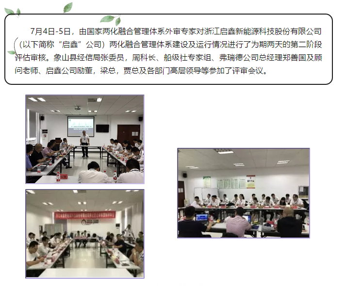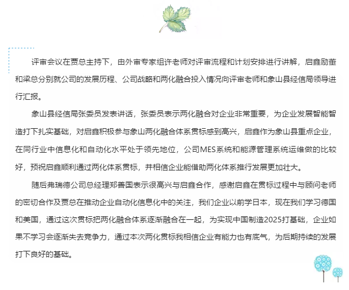 恭贺浙江启鑫新能源科技股份有限公司《两化融合管理体系》顺利通过专家组二审