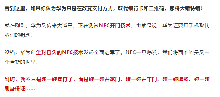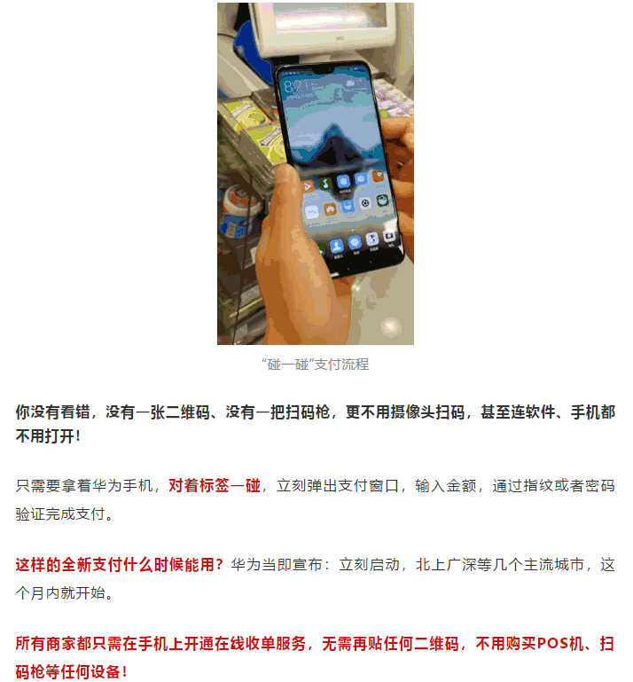 支付方式巨变!“碰一碰”对战“扫一扫”,华为打响第一枪!