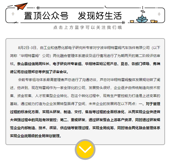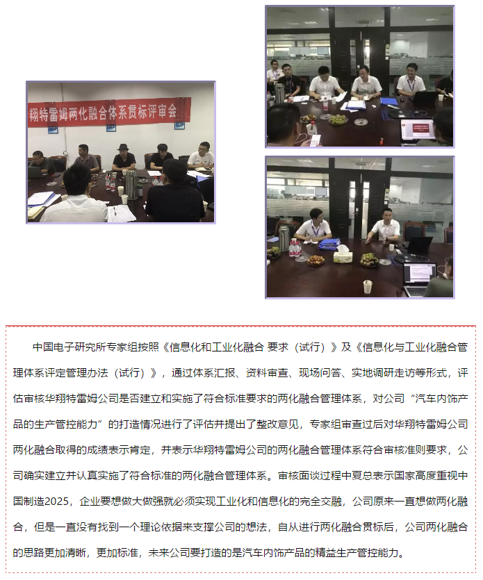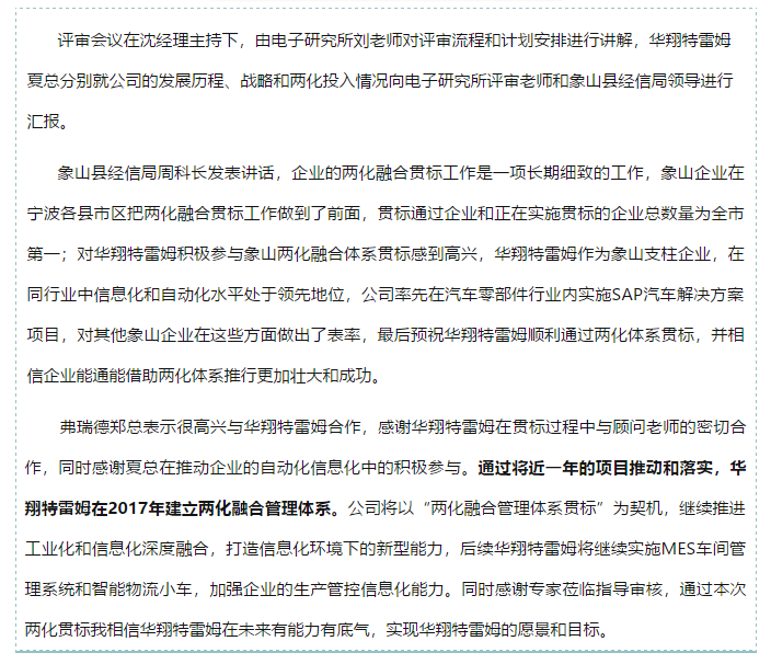 恭贺宁波华翔特雷姆汽车饰件有限公司《两化融合管理体系》顺利通过专家组二审