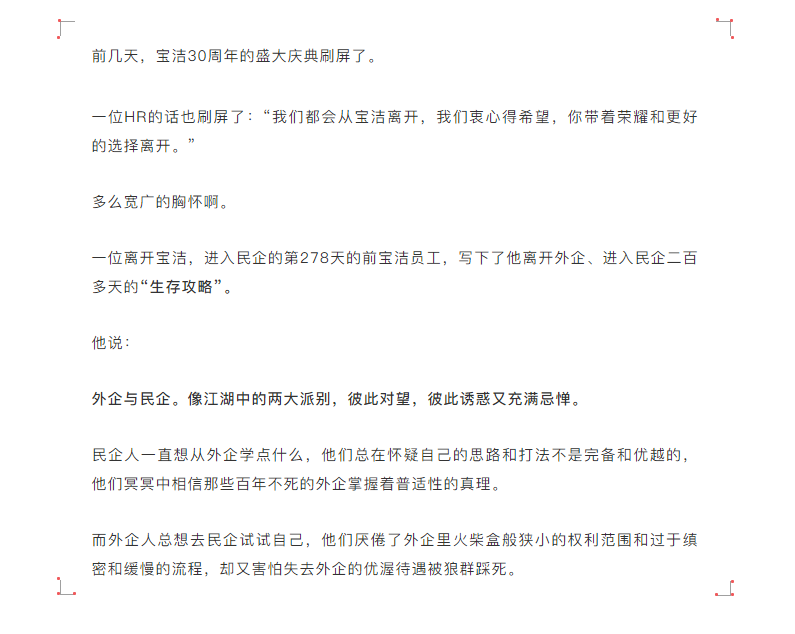 宝洁离职员工生存攻略火了:我离开外企,来到民企的第278天