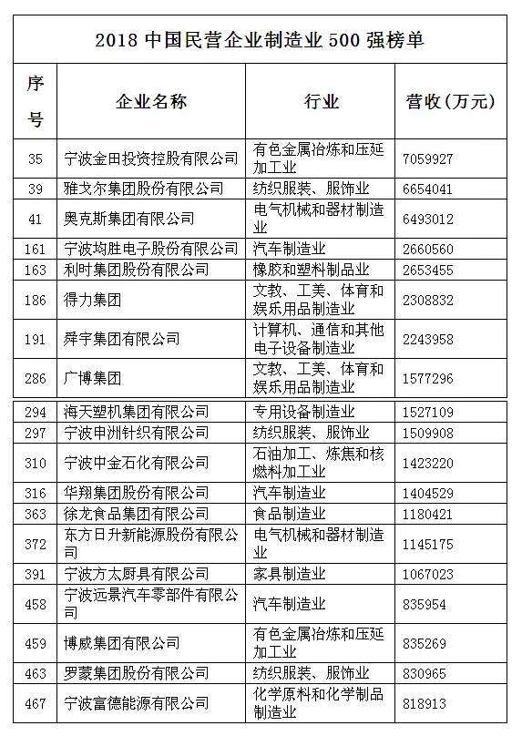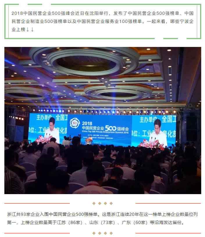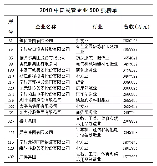 中国民企500强发布!宁波这些企业上榜!