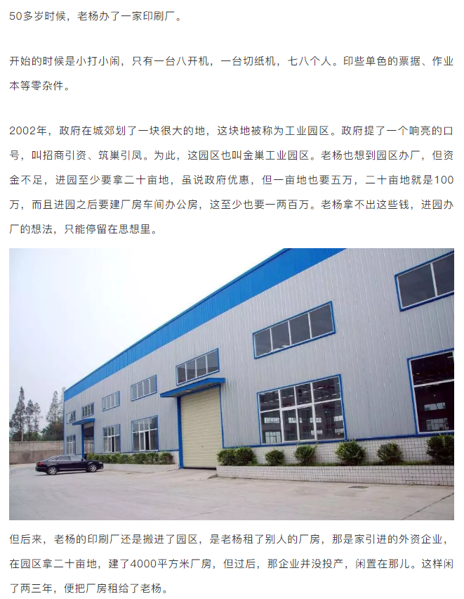 讽刺:50多岁时候,老杨办了一家印刷厂