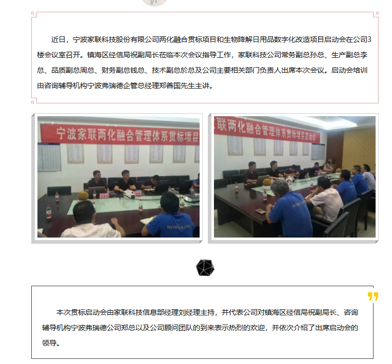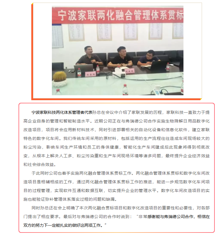 宁波家联科技《两化融合贯标项目》和《生物降解日用品数字化改造项目》启动会分享