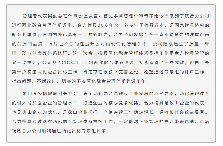 恭贺宁波合力模具科技股份有限公司《两化融合管理体系》顺利通过专家组一审
