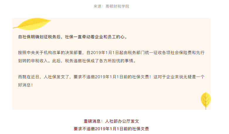 重磅!人社部通知!不再追缴2019年1月1日年前的社保!