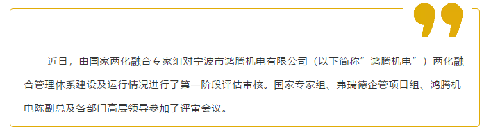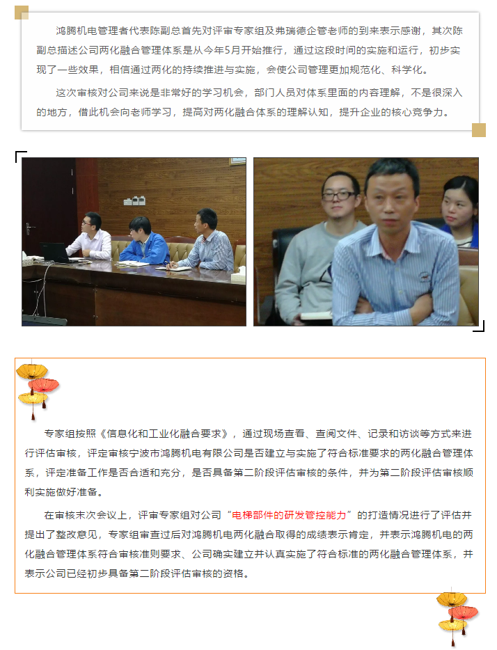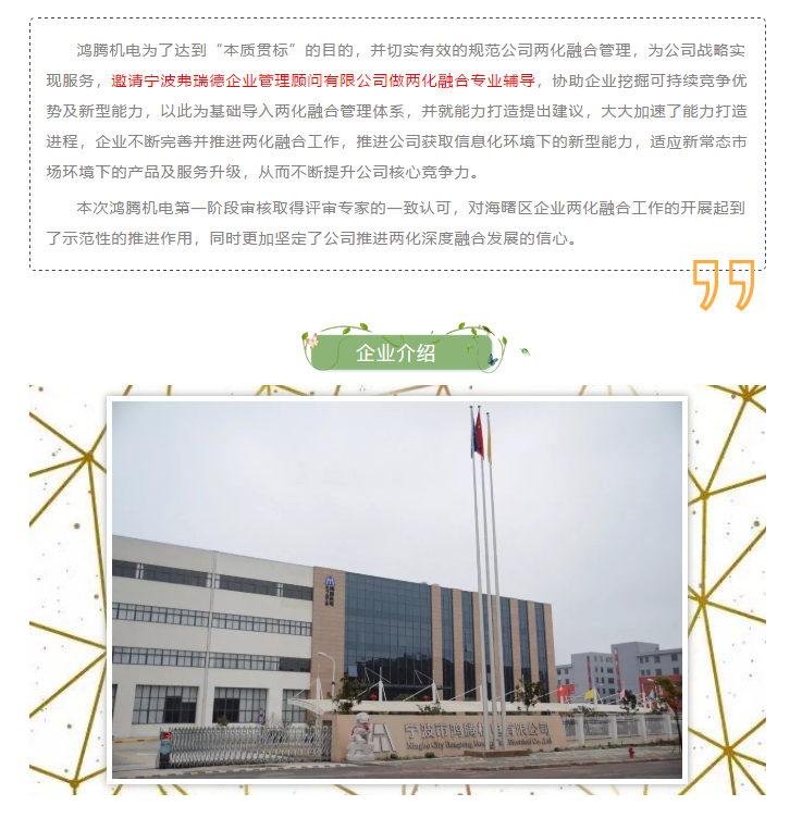 恭贺宁波鸿腾机电《两化融合管理体系》顺利通过专家组一审