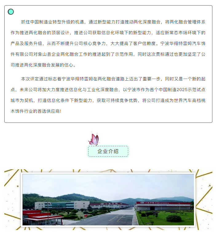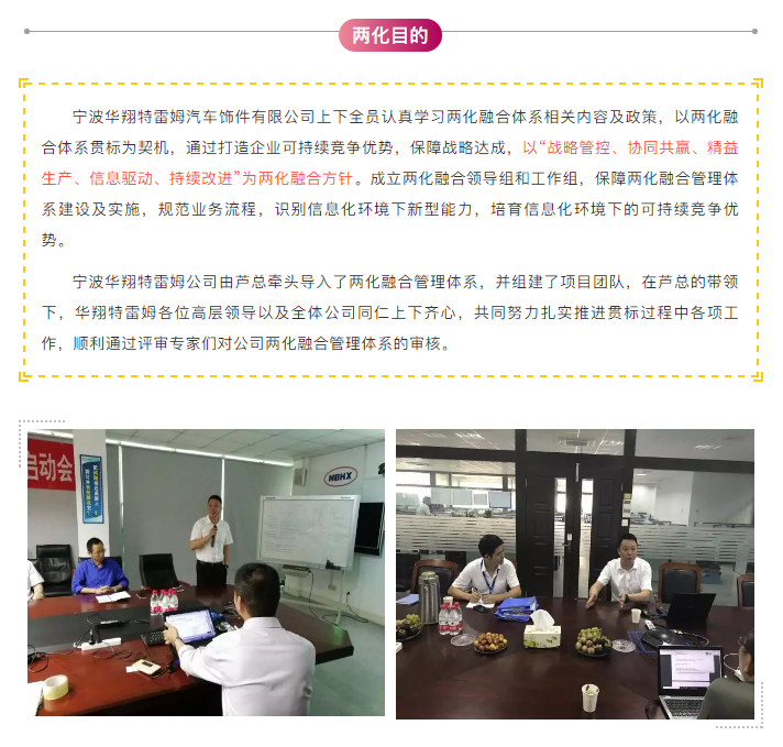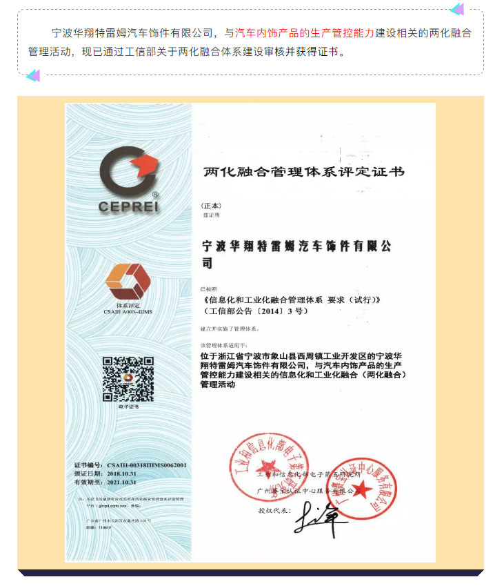 宁波华翔特雷姆汽车饰件有限公司《两化融合管理体系》通过工信部评定!