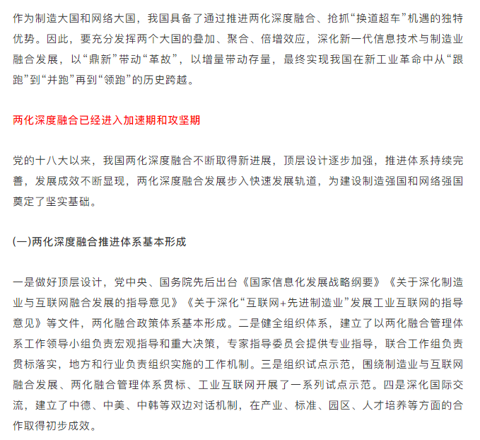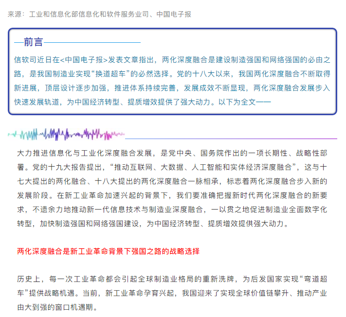 信软司:继续做好信息化和工业化深度融合这篇大文章