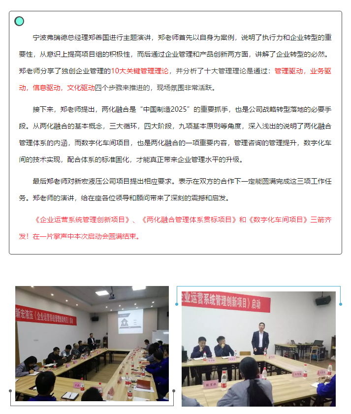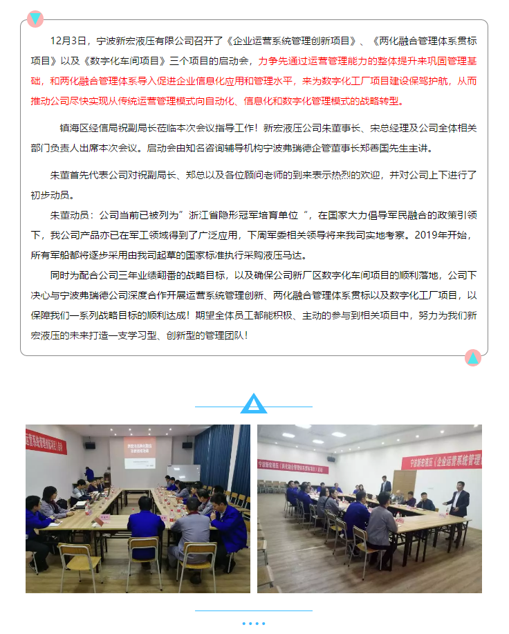 宁波新宏液压有限公司《企业运营系统管理创新项目》、《两化融合管理体系贯标项目》和《数字化车间项目》三箭齐发!