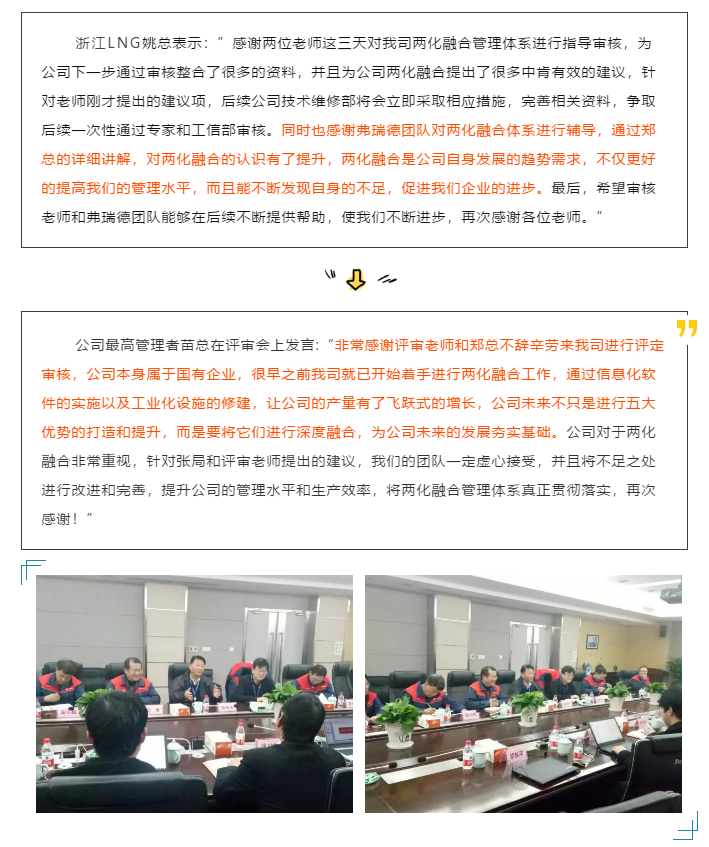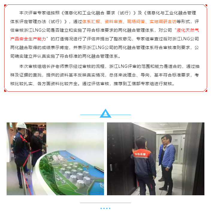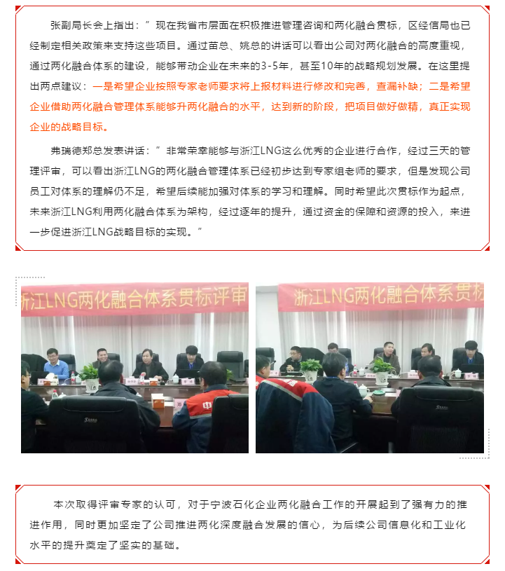 恭贺中海浙江宁波液化天然气有限公司《两化融合管理体系》顺利通过专家组二审
