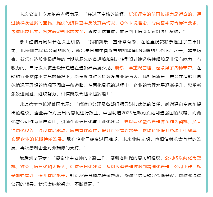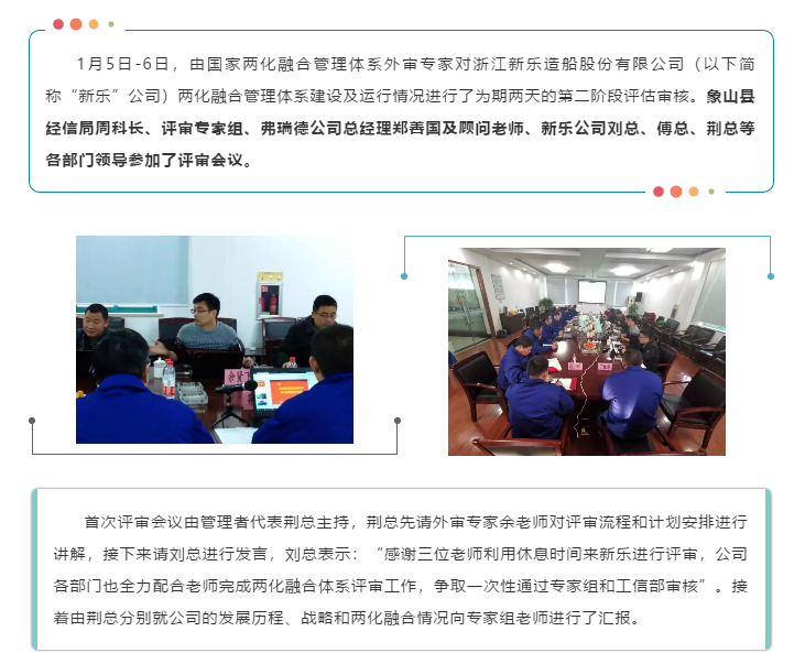 恭贺浙江新乐造船股份有限公司《两化融合管理体系》顺利通过专家组二审