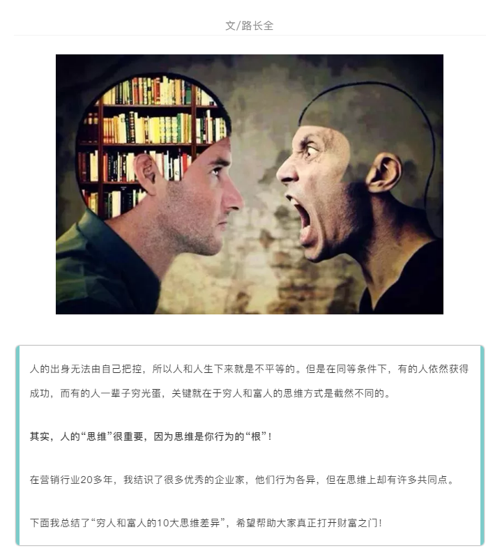 路长全:10大思维差异,决定了你成为“穷人”or“富人”