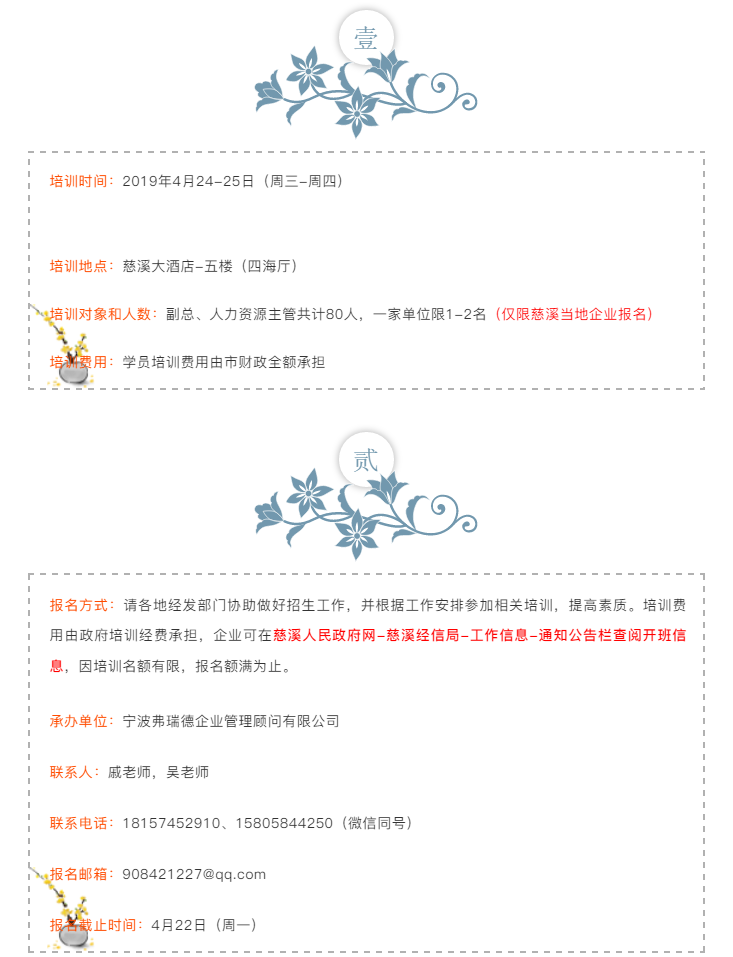 慈溪经信局主办《人力资源管理培训班》开班报名啦!