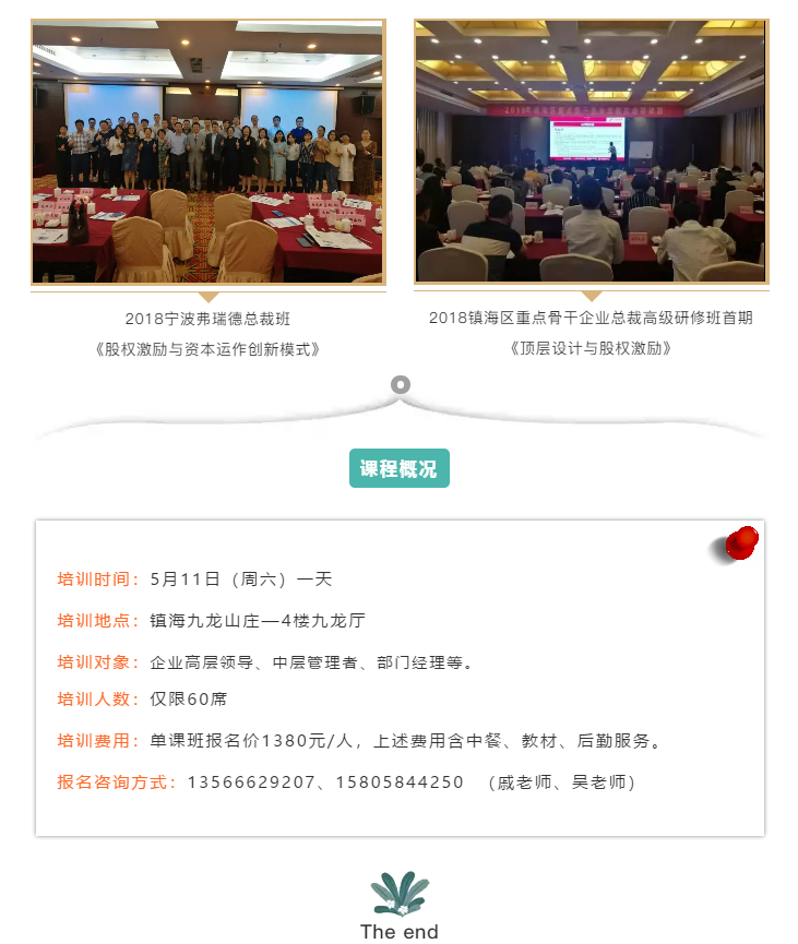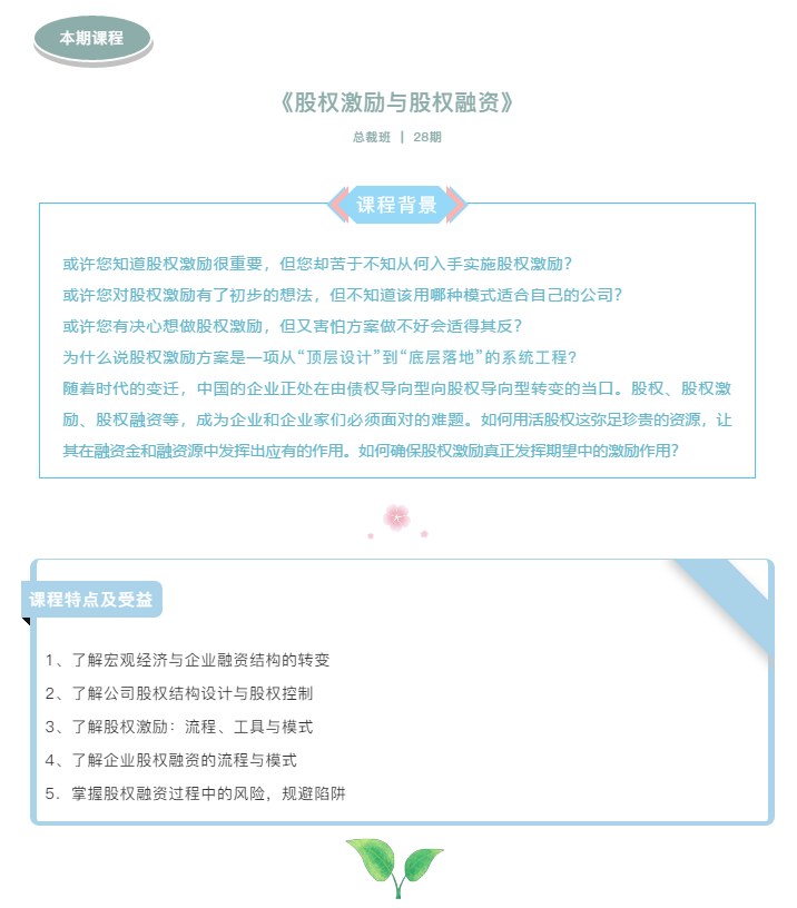 《股权激励与股权融资》辅导式总裁班开班报名啦!!
