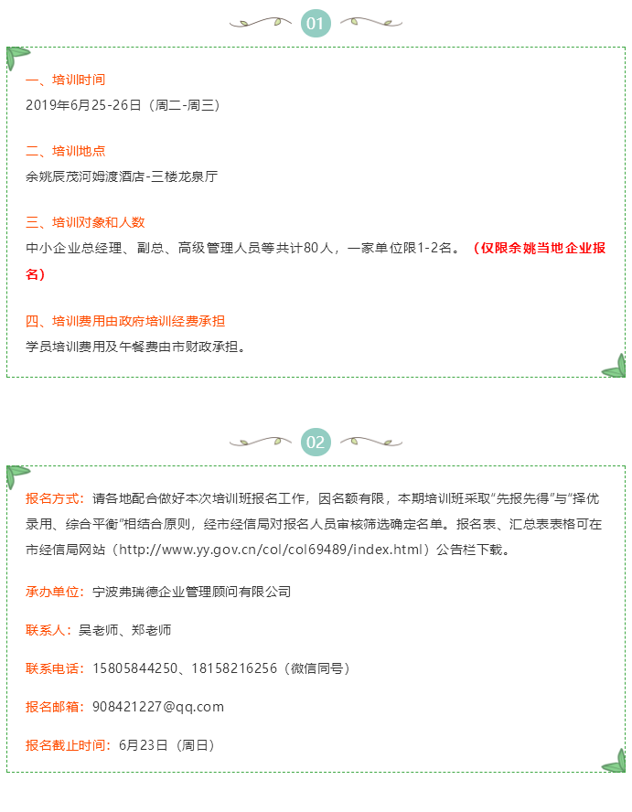 余姚市经信局主办 《中小企业运营管理与执行培训班》报名啦!!