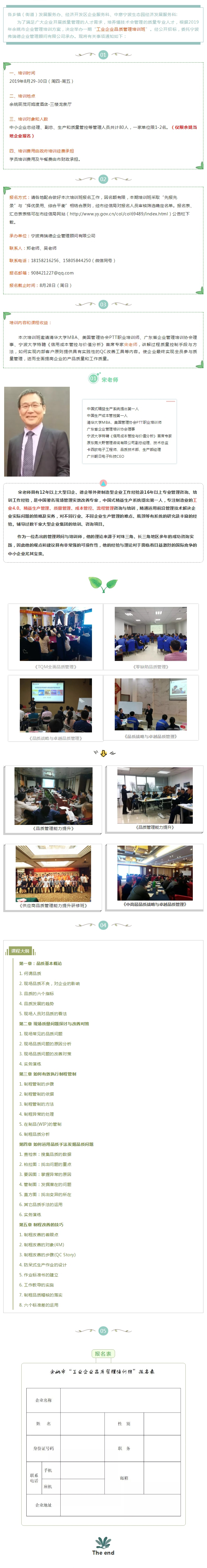 余姚市经信局主办 《工业企业品质管理培训班》报名啦!!