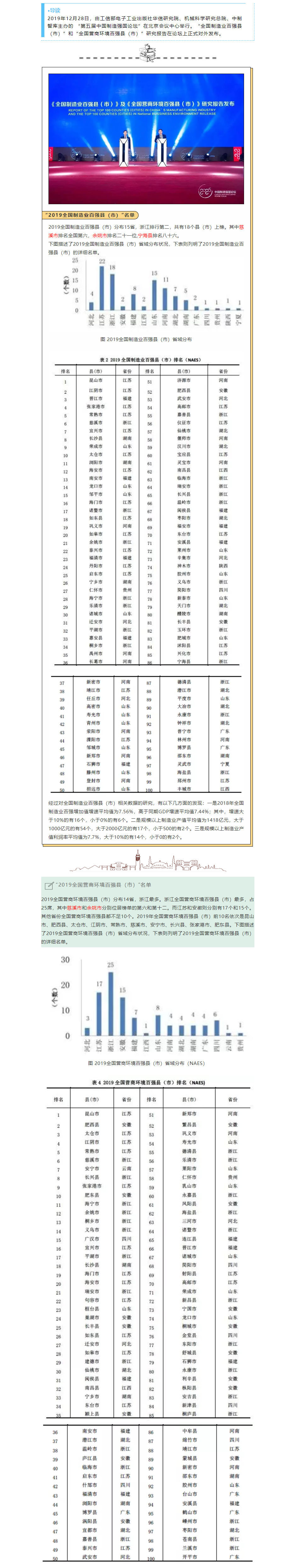 2019全国制造业百强县(市)、全国营商环境百强县(市)发布