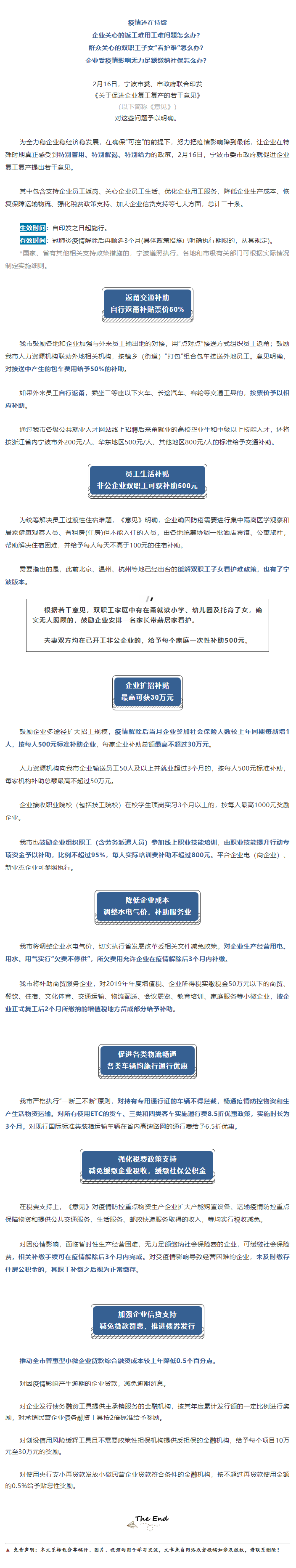 重磅!宁波发钱了!非公企业双职工家庭一次补助500元!20项政策你能享受到哪些?
