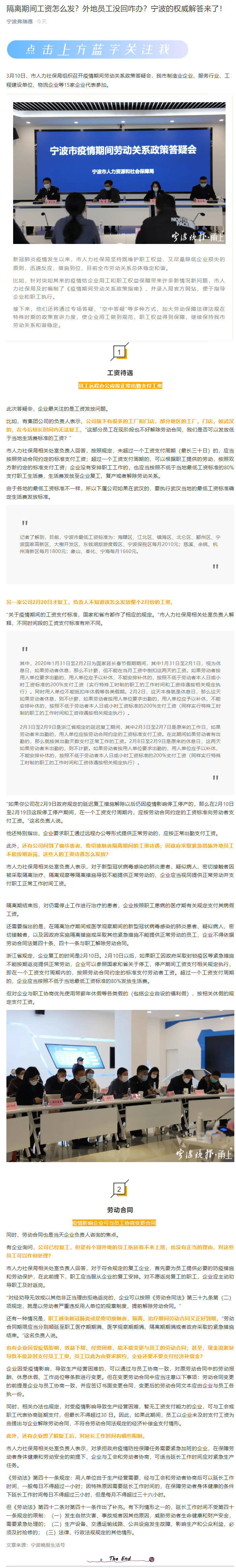 隔离期间工资怎么发?外地员工没回咋办?宁波的权威解答来了!
