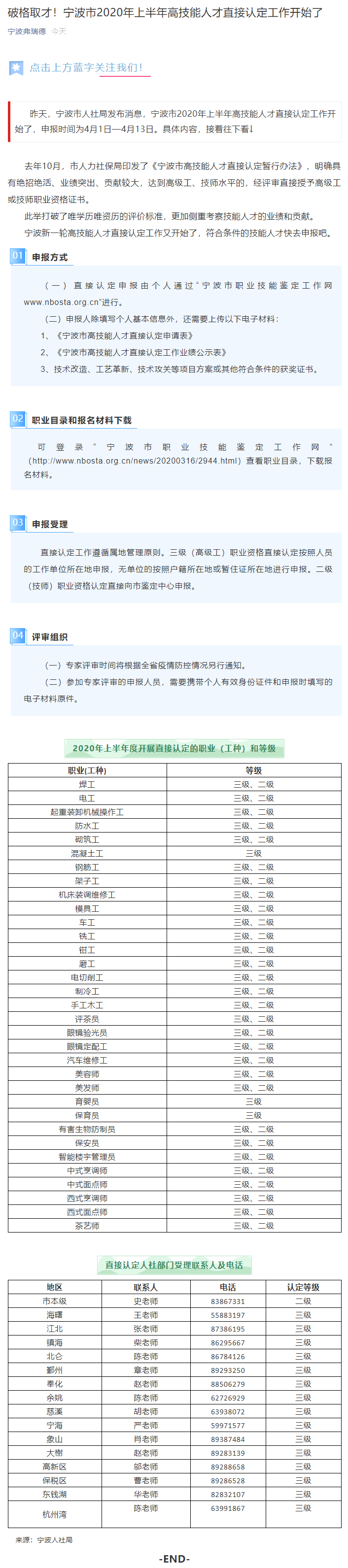 破格取才!宁波市2020年上半年高技能人才直接认定工作开始了