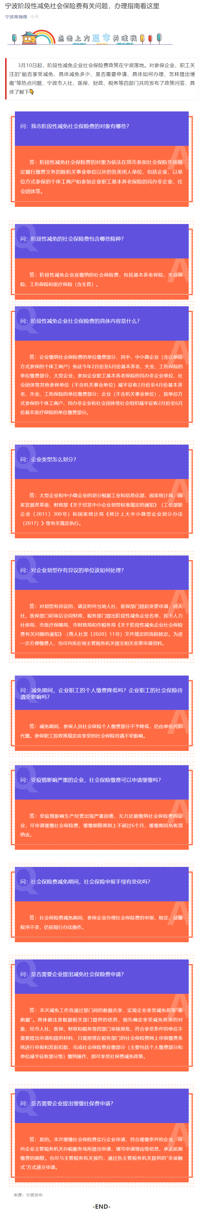 宁波阶段性减免社会保险费有关问题,办理指南看这里