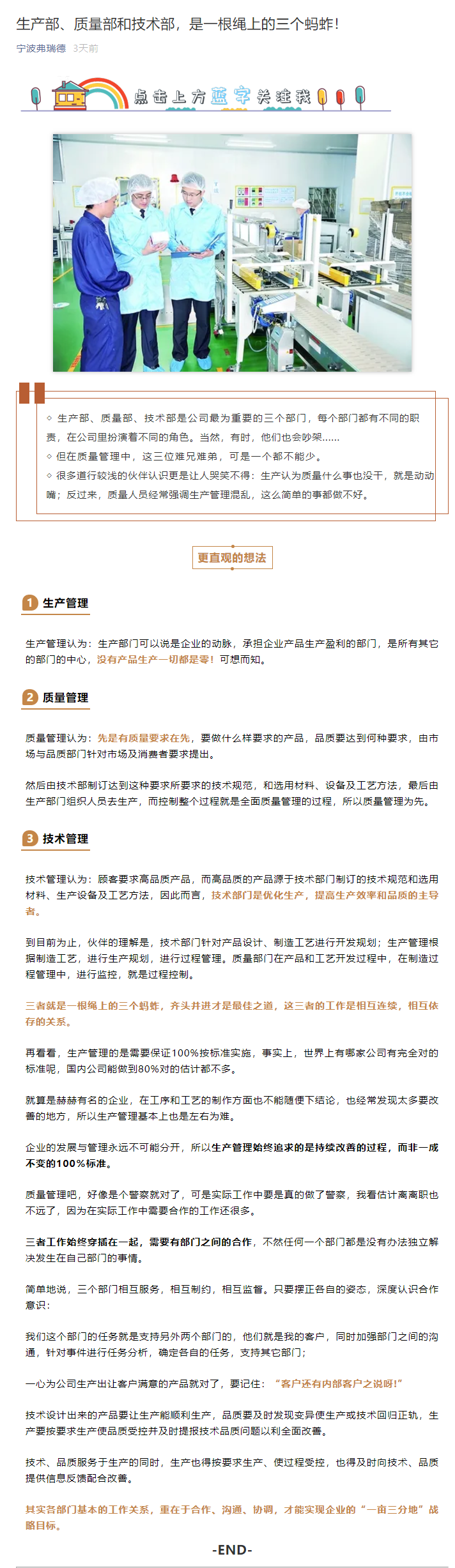 生产部、质量部和技术部,是一根绳上的三个蚂蚱!