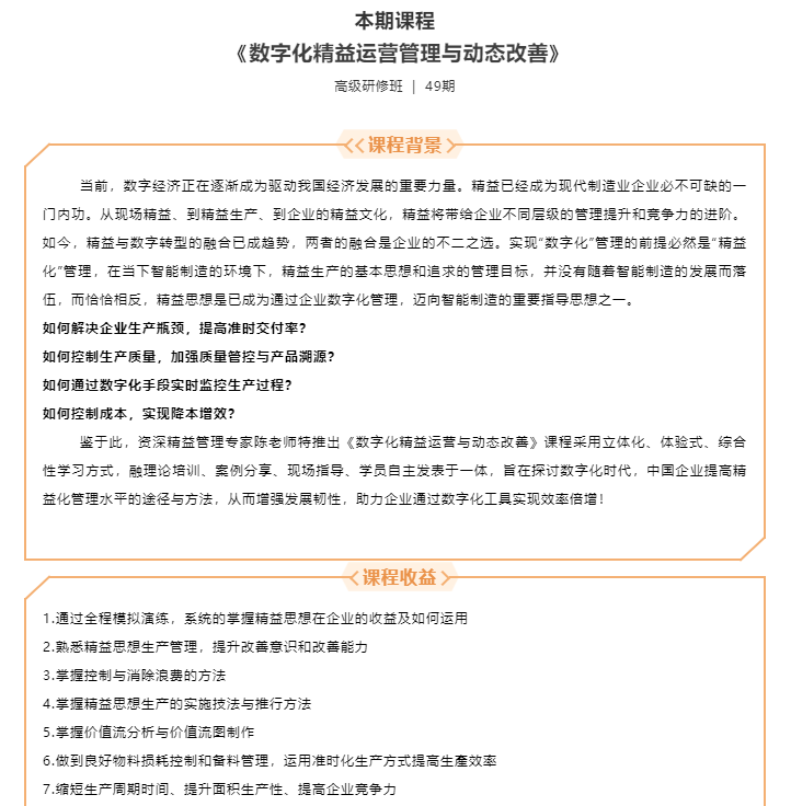 《数字化精益运营管理与动态改善》企业管理高级研修班开班报名啦!!!