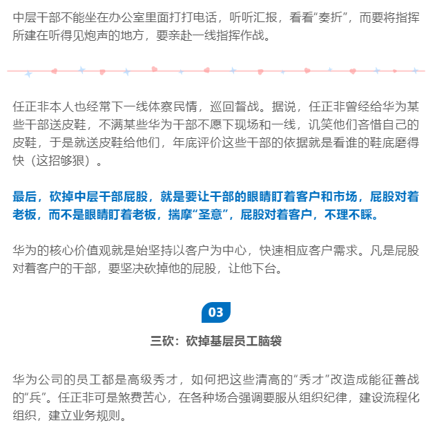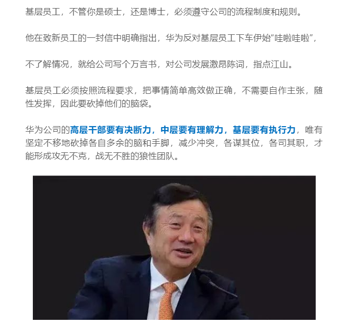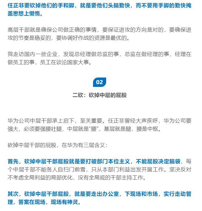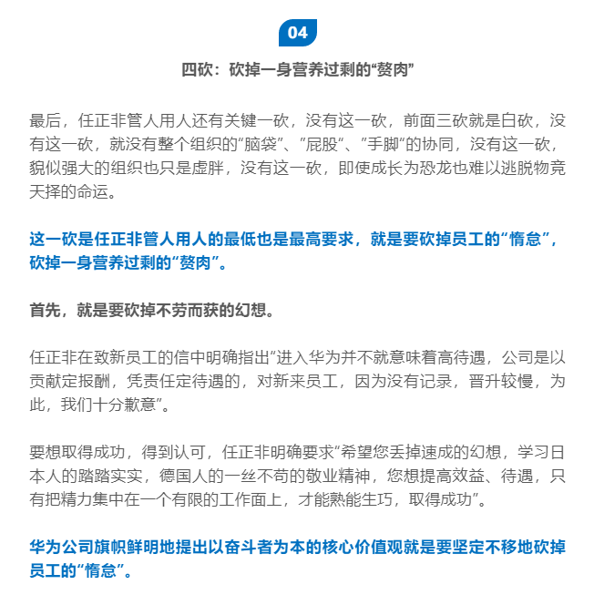 任正非用人“四砍”:砍掉高层的手脚、中层的屁股、基层的脑袋、全身的赘肉