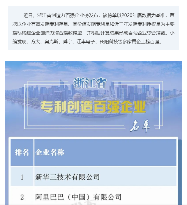 浙江省创造力百强企业榜单发布,多家甬企上榜!