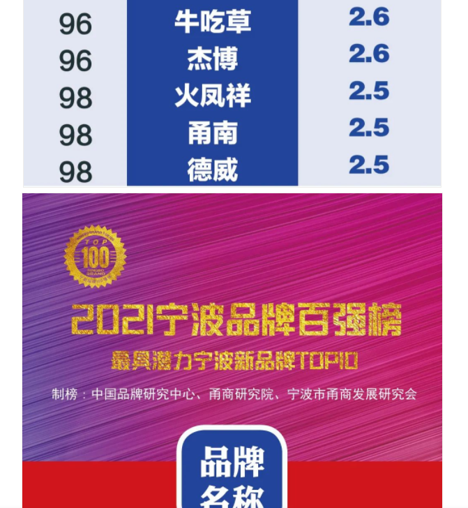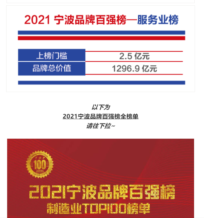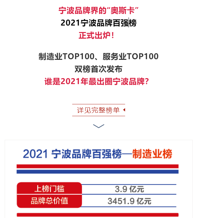重磅 | “2021宁波品牌百强榜”全榜单正式发布